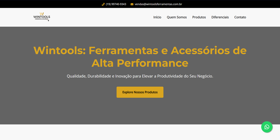 - Projeto de destaque: desenvolvimento completo do site wintoolsferramentas.com.br (layout, integração de catálogo de produtos e otimização SEO).